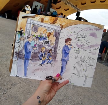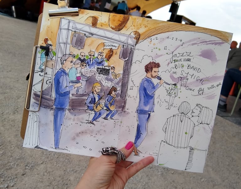 Beim Livezeichnen entstehen handgezeichnete Portraits oder Szenen direkt vor Ort.