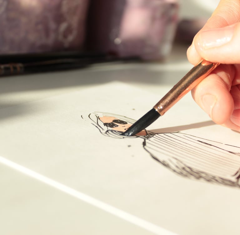 Jessica arbeitet mit Fineliner und Aquarell, auf archivfestem Papier und mit lichtechten Künstlerfarben.